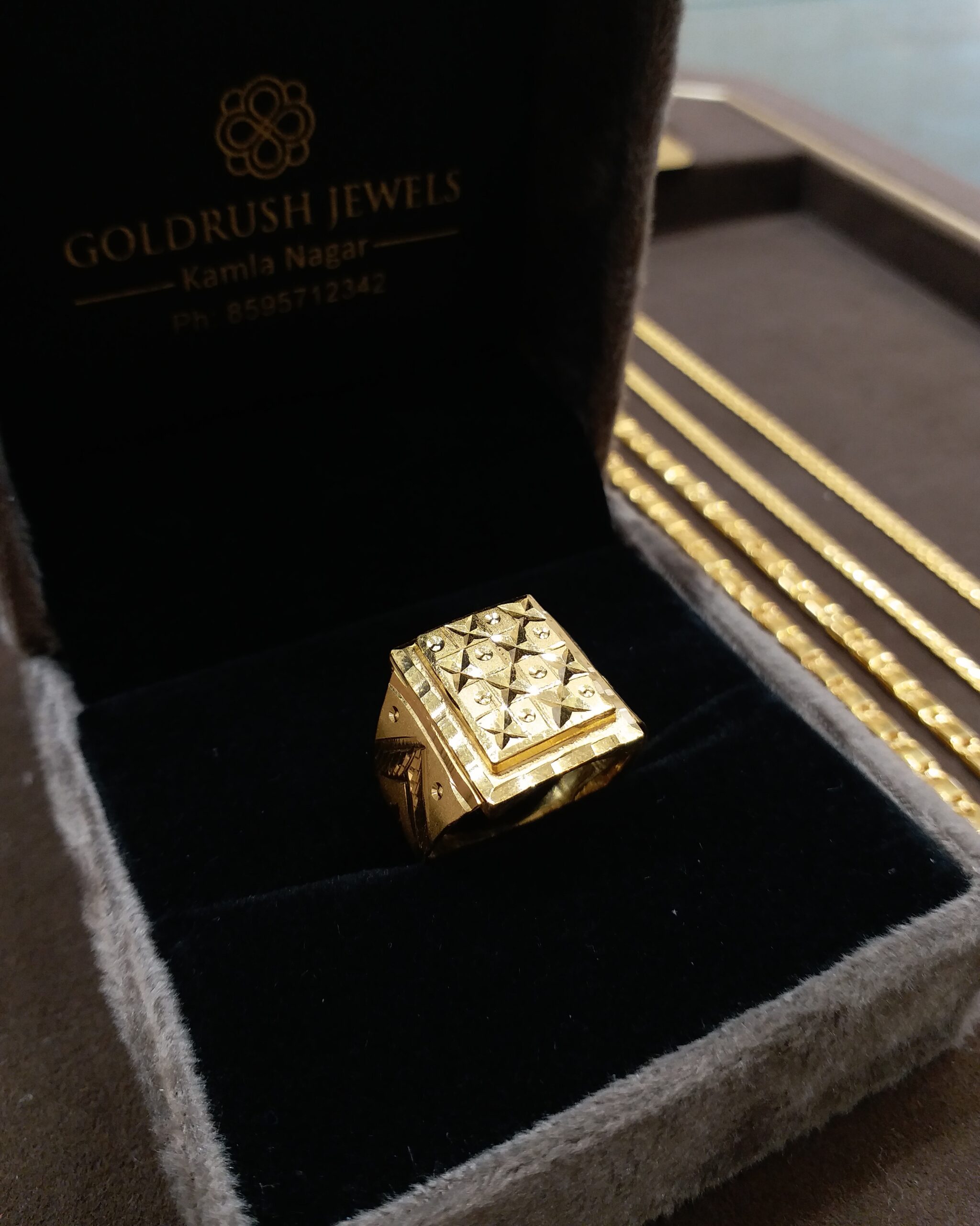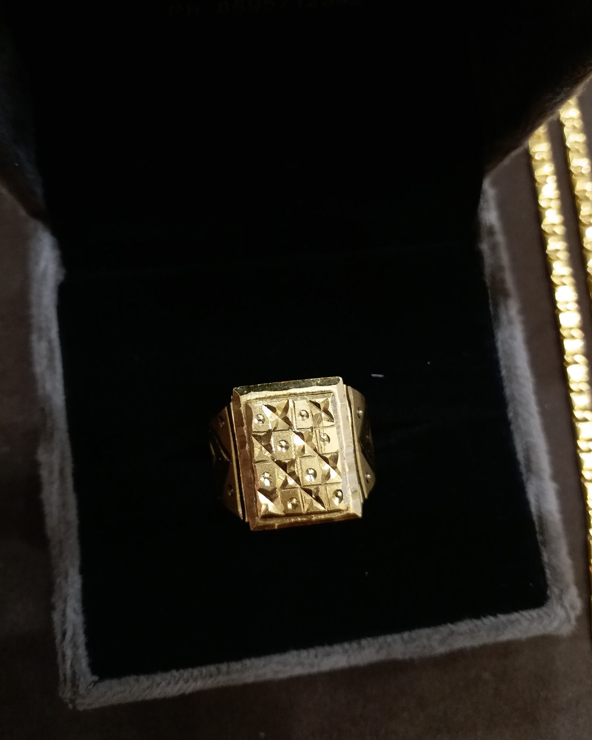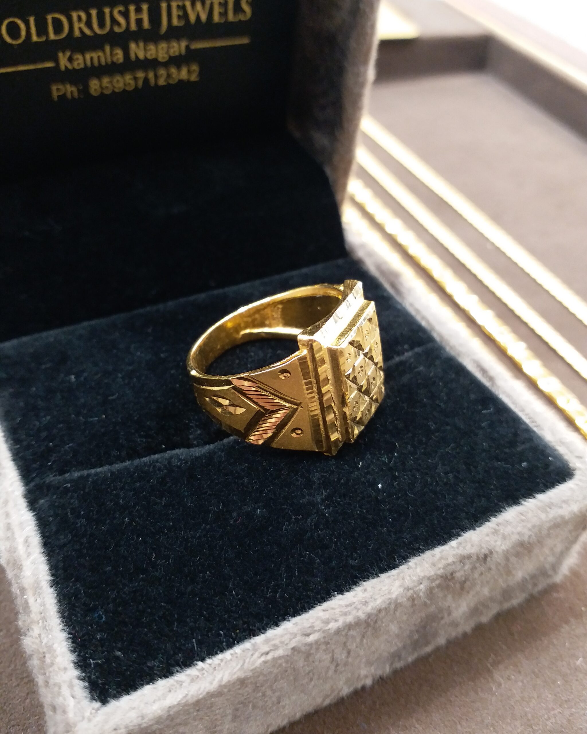 Stylish gold box ring designed for men. Perfect for daily wear or gifting.